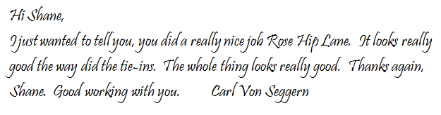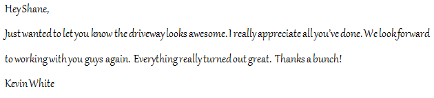Shane and his crew did a great job on our driveway this week. All were very professional with much attention to detail. I would recommend his firm to anyone!